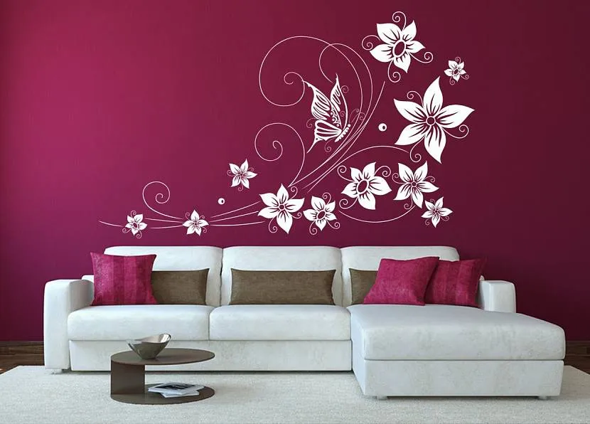 Роспись по трафарету в гостиной комнате на ярком фонеИсточник pinterest.de