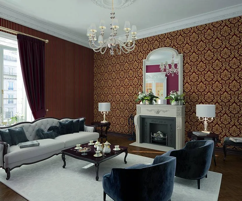 - Текстильные обои. Это чистые и натуральные полотна. Они создадут неповторимую атмосферу в классическом стиле интерьера. Не практичны, так как легко пачкаются. Стоят дорого, но в завершенном стиле комнаты смотрятся богато, роскошно и совершенно.