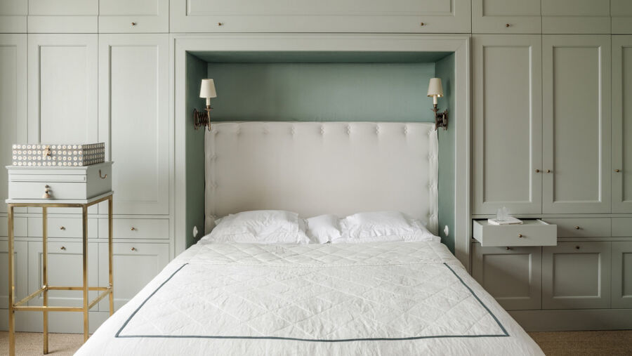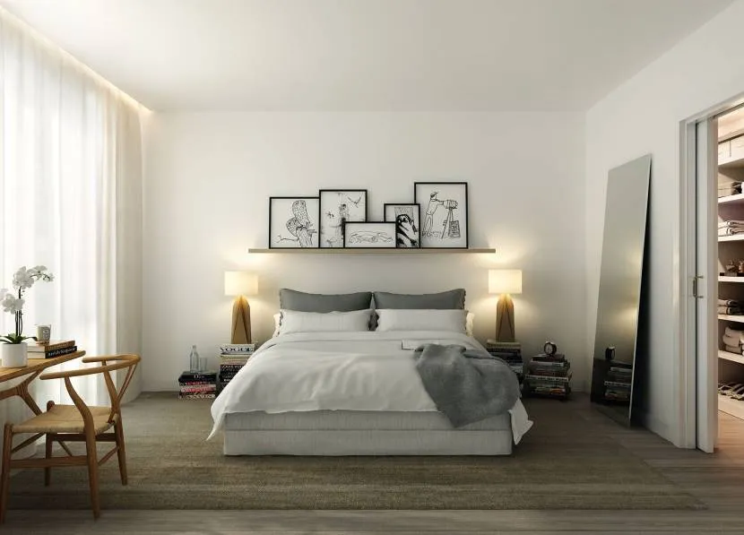 Отсутствие лишней мебели. защищенное изголовье кровати и плавные линии — хорошая спальня с точки зрения фэн-шуй
