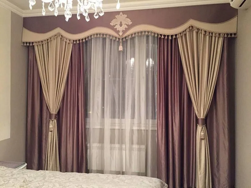 Данный элемент декора выполненный из двух типов тканей, выглядит оригинально и со вкусом. Благодаря комбинированной отделке бандо для штор дизайн интерьера обретает определенное настроение.