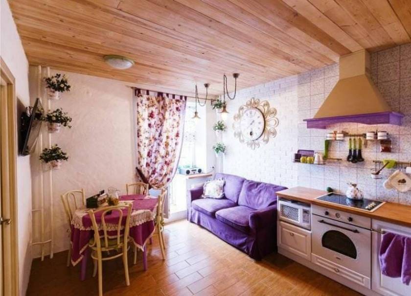 То же правило, что и с прихожей: модные интерьерные решения это хорошо, но лучше оставаться в рамках здравого смысла, и класть на пол плитку или линолеум, по крайней мере, в рабочей зоне. Не располагать рядом с плитой обои и не делать натяжной потолок, который чувствителен к высоким температурам.