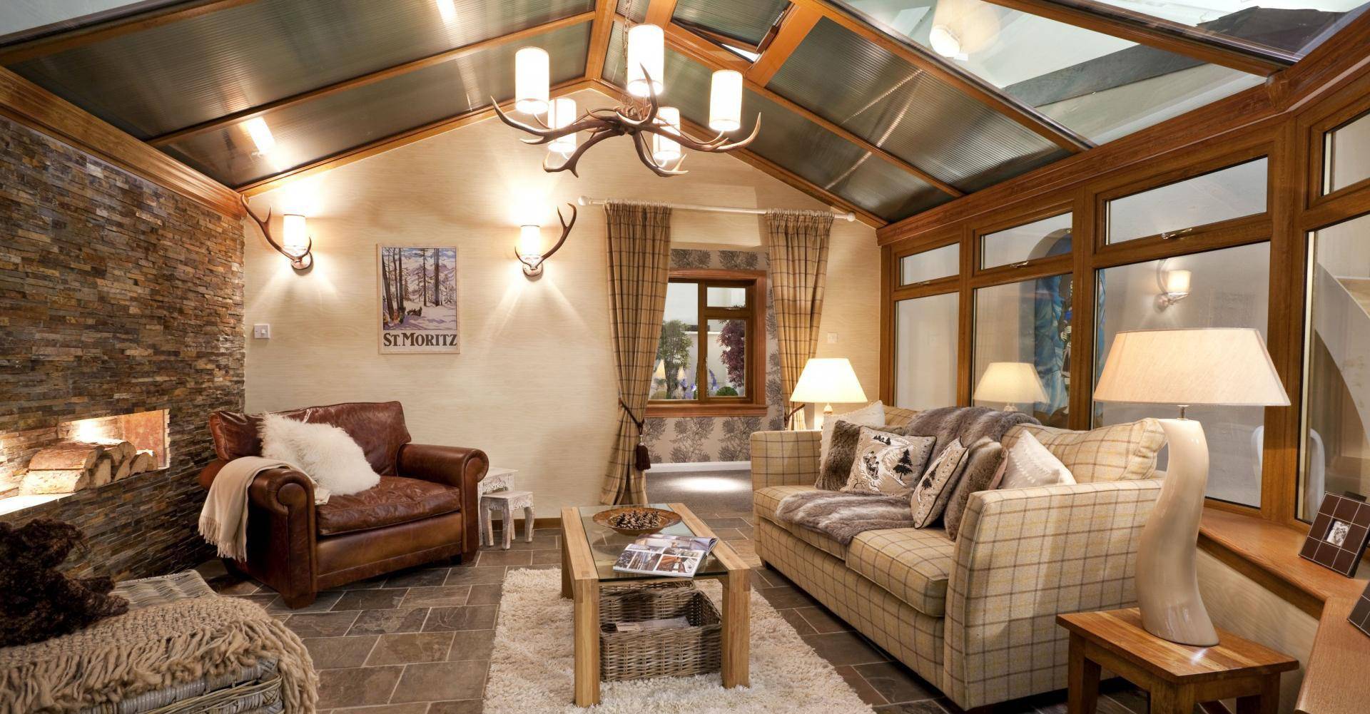 Часто к загородным домам пристраивают веранды или террасы. В таких комнатах обычно много окон и днём достаточно естественного солнечного света. Вечером с помощью искусственного света можно создать атмосферную иллюминацию, которая не только осветит помещение изнутри, но и украсит дом снаружи.