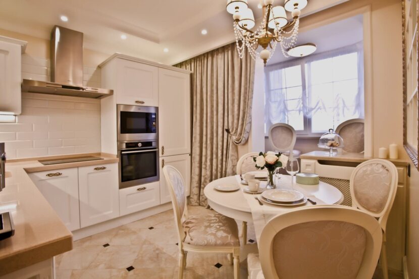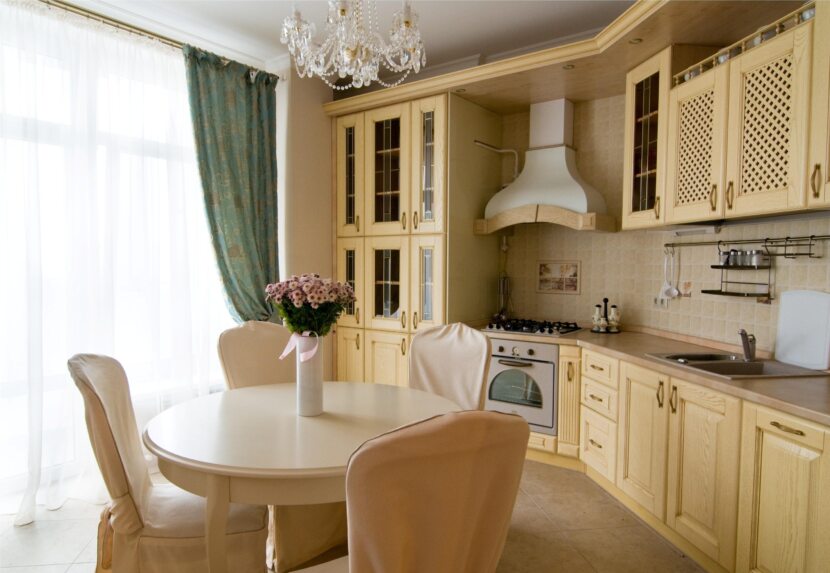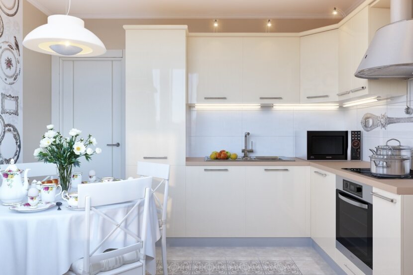 Выбирая белый тон для оформления кухонного пространства, остановите внимание на теплых оттенках, они раздвигают стены, настраивают на позитив