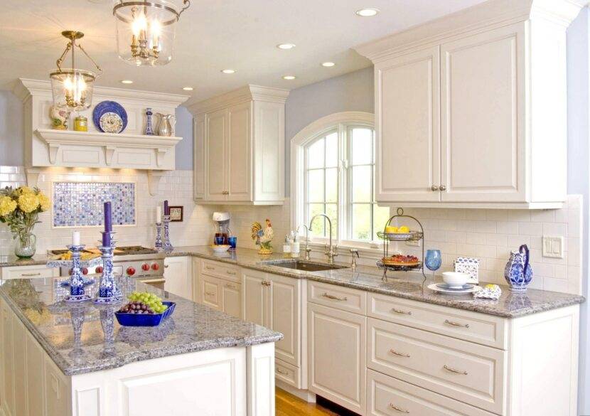 Белый кухонный гарнитур – хорошее добавление к окрашенным в пастельные тона стенам, черной столешнице. Подходящий дизайн для стилей минимализм, хай-тек. Универсальность белого позволяет создать как монохромные интерьеры, так и многоцветные.