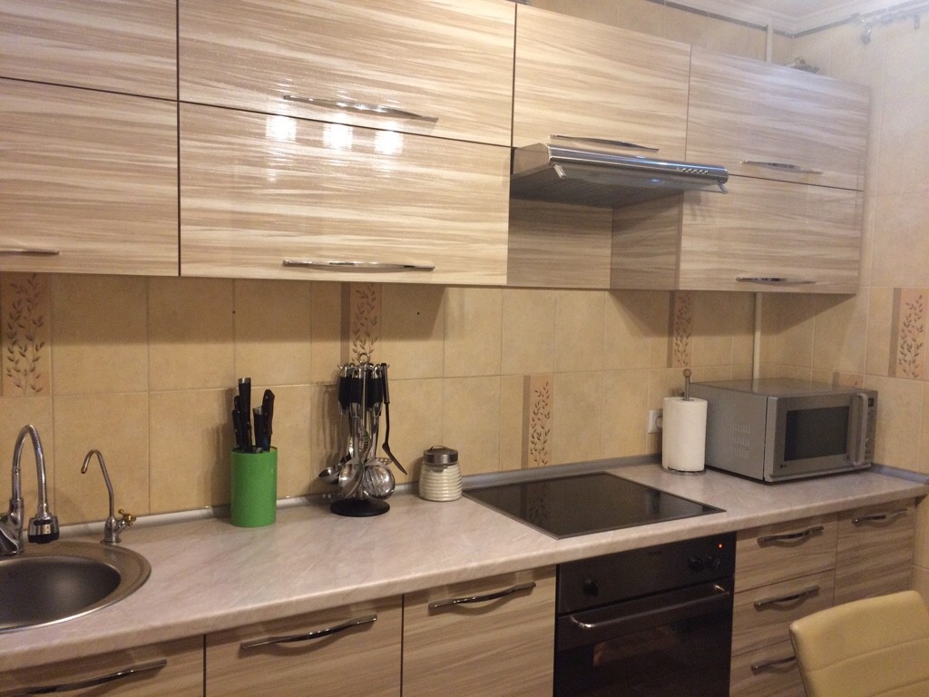 - фасады из ДСП лучше не вешать над плитой на высоте менее 60 см, иначе под действием пара они быстро придут в негодность;