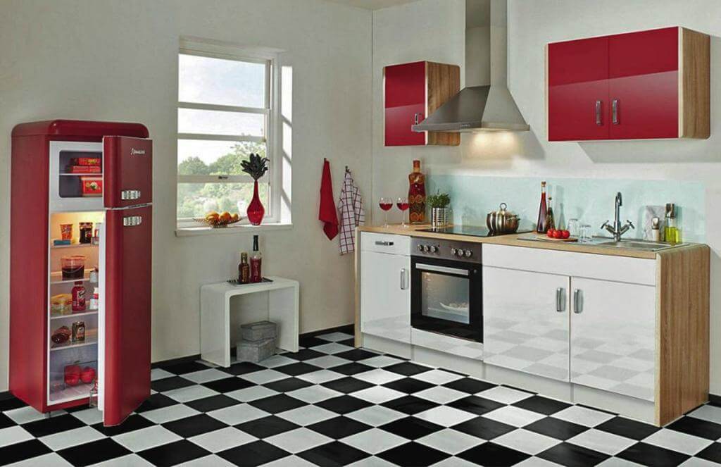 Лучшие варианты – совмещение красного с белым, черным, серым, коричневым. С синим, зеленым он выглядит экстравагантно, для кухни это слишком агрессивное сочетание. Выбирайте алый как дополнительный оттенок на бежевой, светло-серой кухне (фасады мебели) либо используйте как акцент (стулья в обеденной зоне, яркий постер, ваза).