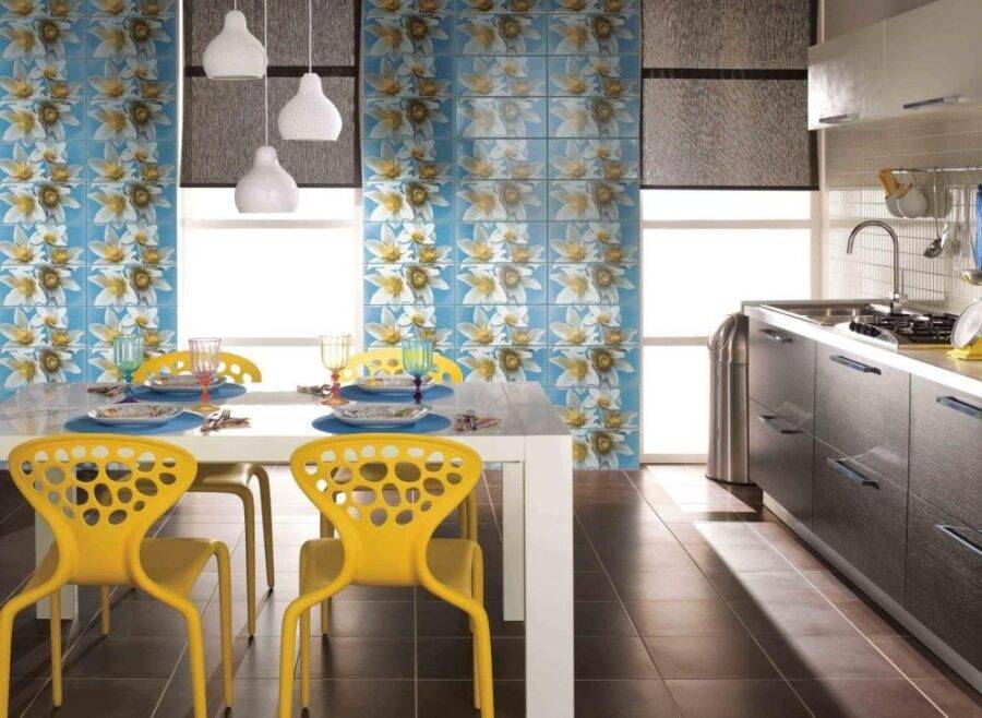Кухонный фартук зачастую выступает самым ярким акцентом всего пространства. Его желательно оформлять в цветах, противоположных кухонному гарнитуру и другой мебели. Игра контрастов помогает расставить нужные акценты.