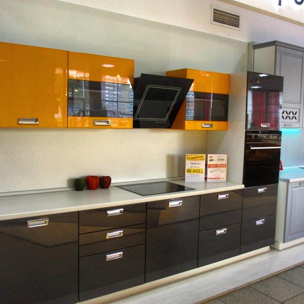 Большая кухня в ярких тонах с черным цветом – это стильное, современное помещение с уютной обстановкой.