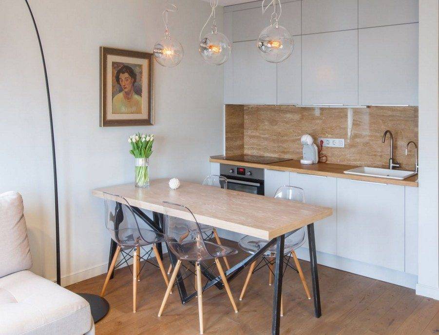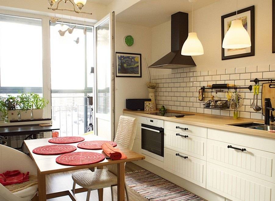 Еще можно убрать дверь, соединяющую кухню с соседним помещением, выполнив дверной проем в виде арки – это зрительно увеличит площадь кухни.