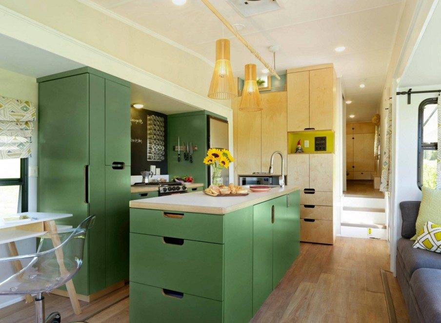Рискованное решение — зеленая кухня. Этот цвет выглядит совсем иначе на солнце и без него, поэтому я бы не рекомендовал использовать его в комнате с большим количеством естественного света — результат будет непредсказуемым.