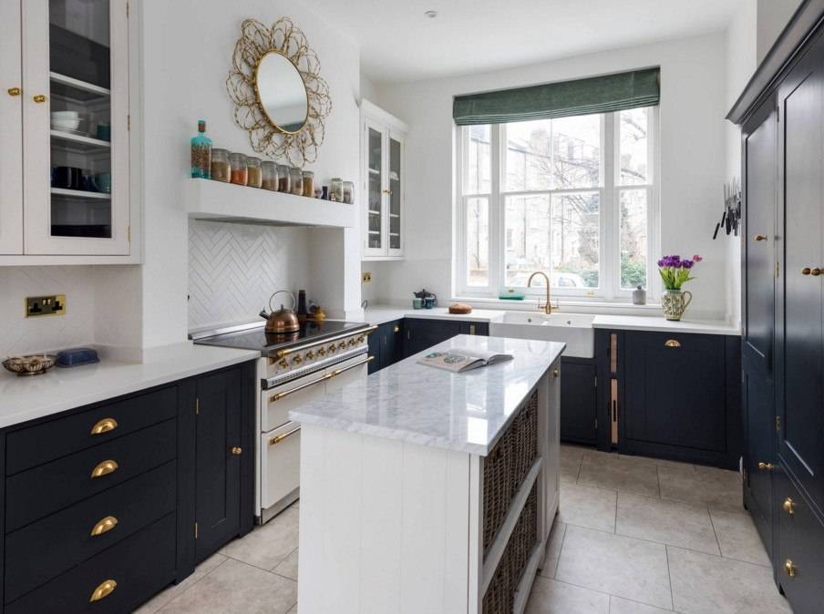 Добавьте черный цвет, чтобы создать темно-синюю кухню: