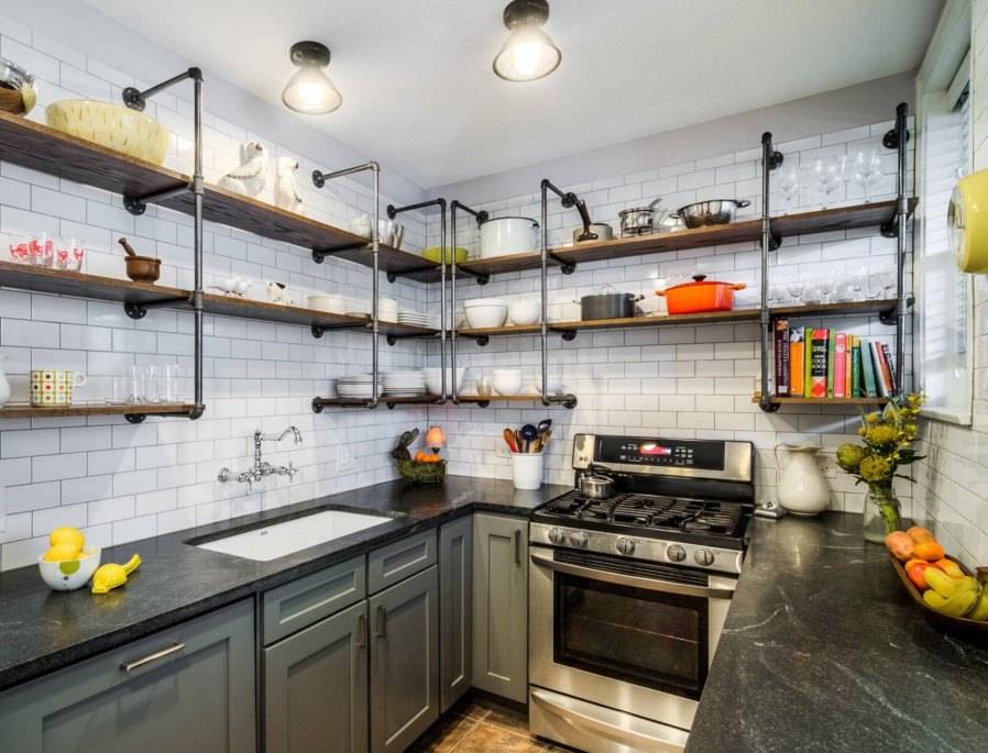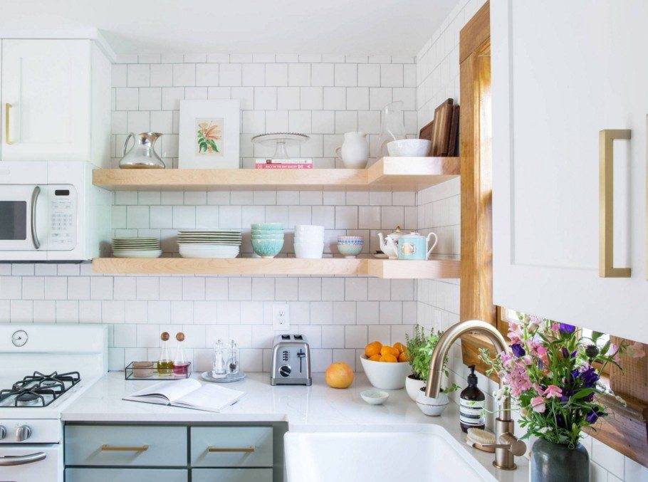 Являются не только декоративным, но и практичным элементом интерьера. На них можно расставить разноцветные баночки со специями, стаканы, чашки, красивые мелочи или сувениры, что предоставит отличную возможность существенно сэкономить пространство.