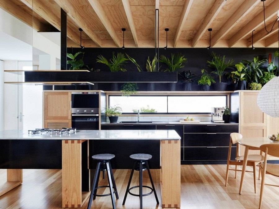 Черный цвет, очень графичный и глубокий. Черная мебель выглядит компактнее, чем светлая. С ней можно сочетать дерево или металл. Серые аксессуары идеально отображаются на заднем плане. Для кухни лучше использовать матовые ткани черного цвета — яркое и яркое искусное освещение затемняет комнату и придает нотку виду.