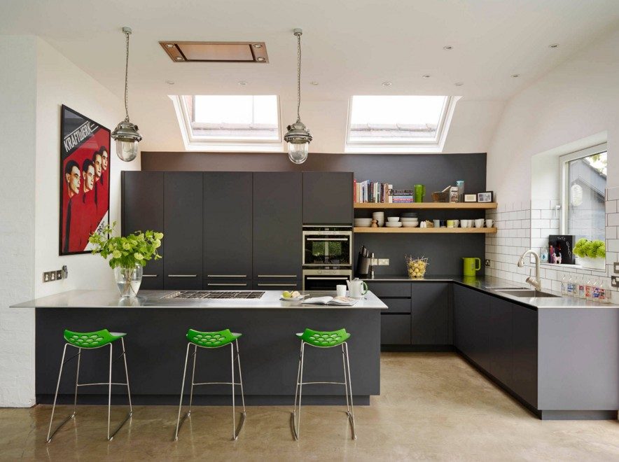 Закрытые двери шкафов создают ограниченное пространство и уменьшают его. Если полки шкафов будут открытыми, зрительно пространство увеличится. К тому же, это — возможность поставить красивую посуду, которая сама по себе является элементом декора.