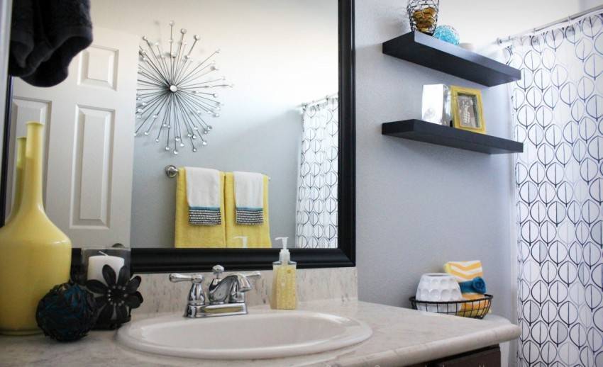 Оживить скучное помещение можно с помощью интерьерных наклеек. Можно нанести на стены, сантехнику, мебель или зеркало в ванной рисунки. Хорошо подойдет декупаж. Можно разрисовать помещение акриловыми красками для стекла. Они образуют пленку, которая не страдает от влажности, но если необходимо, такой рисунок можно легко отклеить, например, если помещение чужое.