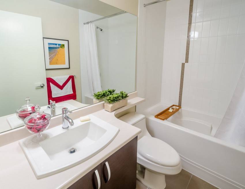 - Много света. Чем больше красного в помещении, тем ярче должен быть свет. Помимо основного освещения, используйте дополнительные группы светильников, подчеркивая определенные зоны ванной – возле ванны, вокруг зеркала, сверху шкафчиков.