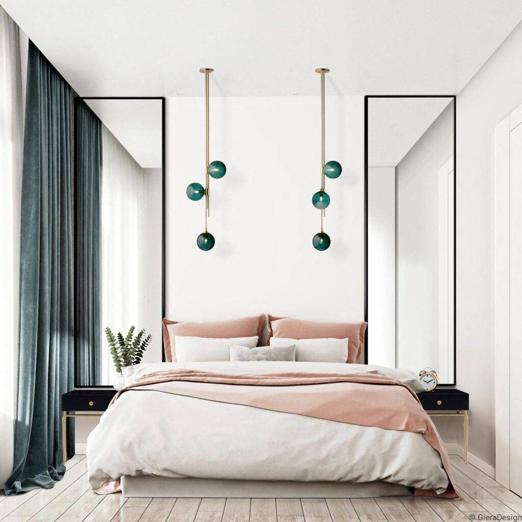 — зеркало «ловит» свет и отражает его. Если в спальне мало окон, поставьте перед ними зеркало. Когда светит солнце, пространство станет ярче. Если мы хотим получить этот эффект, мы должны выбрать обрезные зеркала с большей поверхностью,