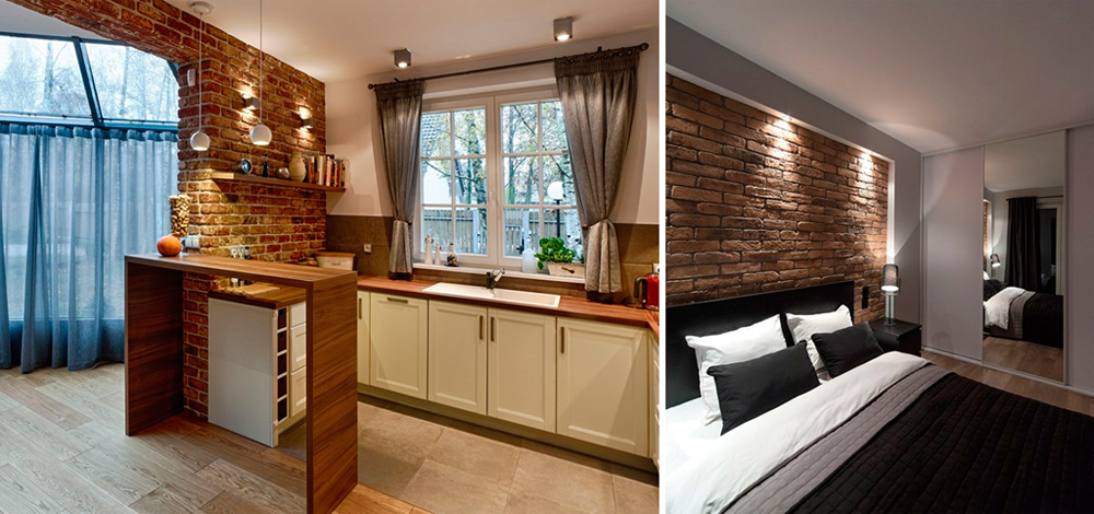 Про кирпич можно говорить очень много. Кирпичная стена является одной из самых горячих тенденций и самой популярной темой в интерьере, которая до сих пор восхищает многих любителей реальности. Это не удивительно, его красота, нерегулярная привлекательная фактура красиво подчеркивает стиль квартиры. Кирпич используется практически везде, от ванных комнат, до коридора, кухни, гостиной и спальни, он вводит в интерьер особую атмосферу. Характерные особенности, даже трещинки и мелкие дефекты найдут свое применение во многих стилях: