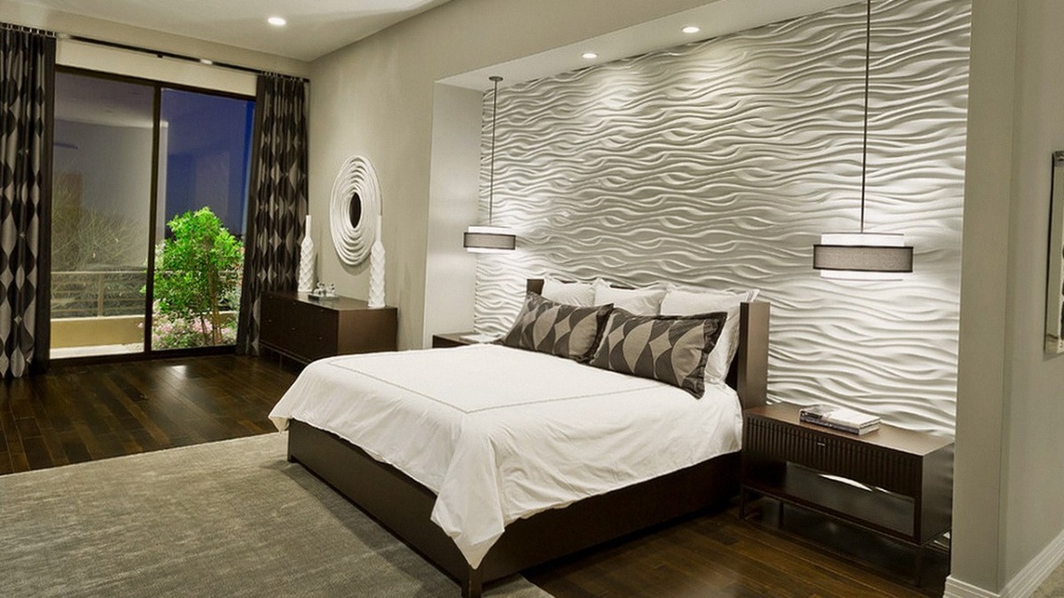 В дизайне интерьера с помощью фактурной штукатурки можно дополнить стены и потолки спальной комнаты, гостиной, зала, прихожей, кухни и даже ванной комнаты (если речь идет о водостойких составах).