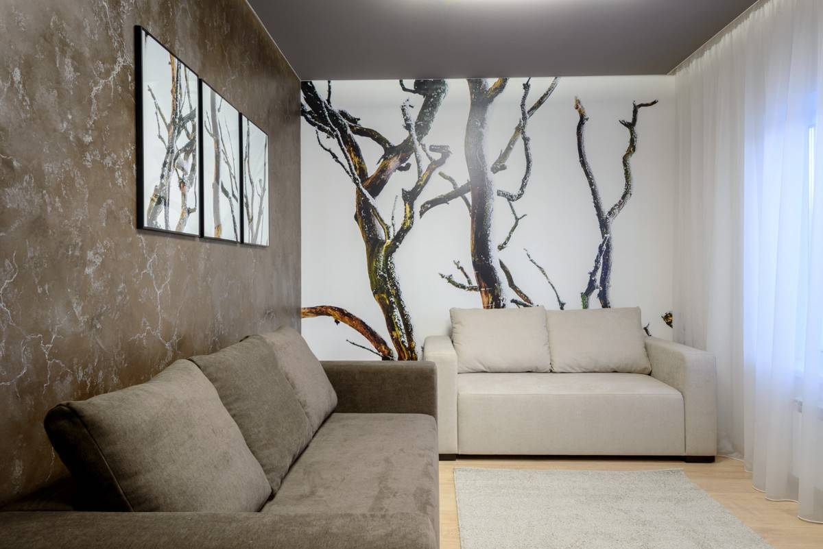 В современных интерьерах редко прибегают к однотипному декорированию всех стен. Для придания выразительности, чаще всего комбинируют материалы. Не стоит использовать только фактурную штукатурку для отделки. Подумайте, с чем лучше ее «подать»: с обоями, покраской или, может, сайдингом.