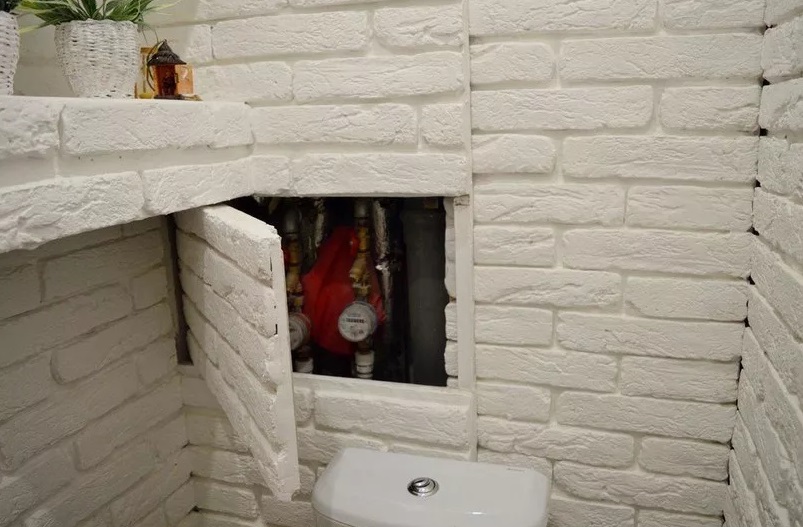- Слой штукатурки в любом случае занимает меньше места, чем настоящие кирпичи, уложенные вдоль стены, однако все равно это потеря свободного пространства, хотя бы на лишний сантиметр. Если помещение и так не может похвастать вместительностью, это может стать проблемой.