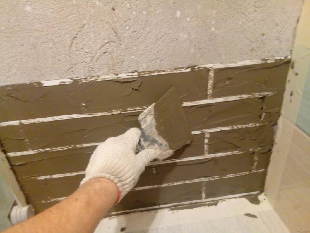 - Не стоит забывать о промежутках между декоративным кирпичом.