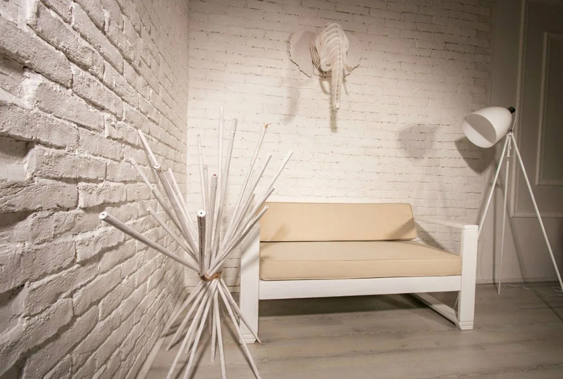 Чем дальше отходишь от стены, тем сильнее впечатление натуральности кладки, окрашенной белой интерьерной краской