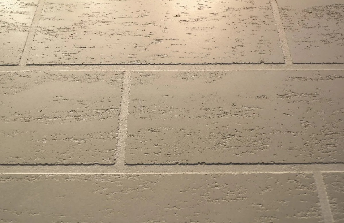 Важно не трогать покрытие – есть риск смазать узор, но если хотите получить интересную фактурную поверхность, проведите по «кирпичам» жёсткой сухой кистью