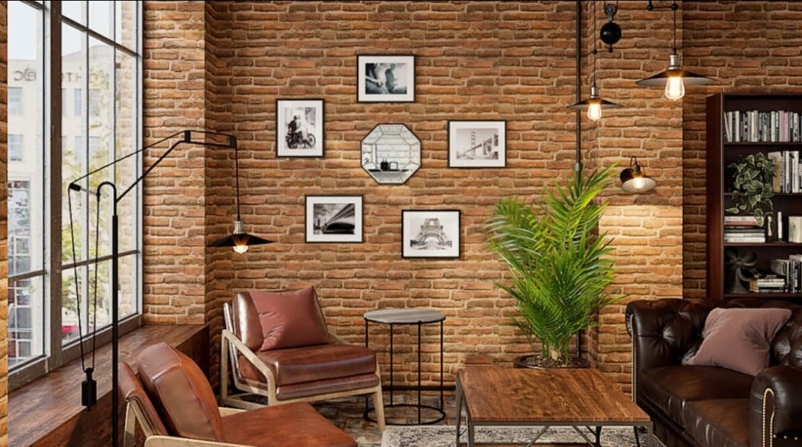 Стены под кирпич можно размещать во всех комнатах, например:
