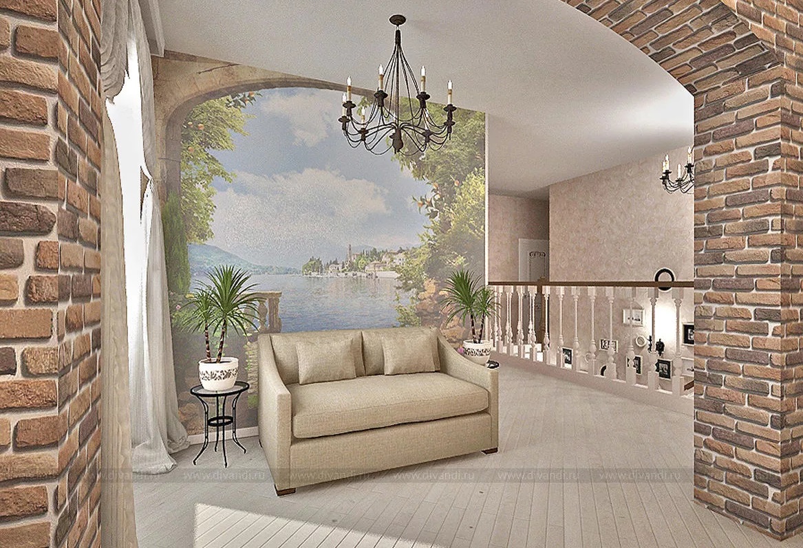 обязательные предметы для декора при таком стиле — пейзажная живопись на стенах.