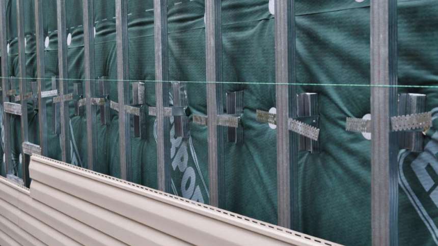 Каркас из металла, монтируемый под панели сайдинга, подходит и для отделки другими изделиями. Металлический профиль хорошо проводит тепло, что является его недостатком в условиях низких температур. Он способен промерзать в холодное время года. Избежать отрицательных последствий позволит менее жесткий профиль из металла длиной 3-4 м.