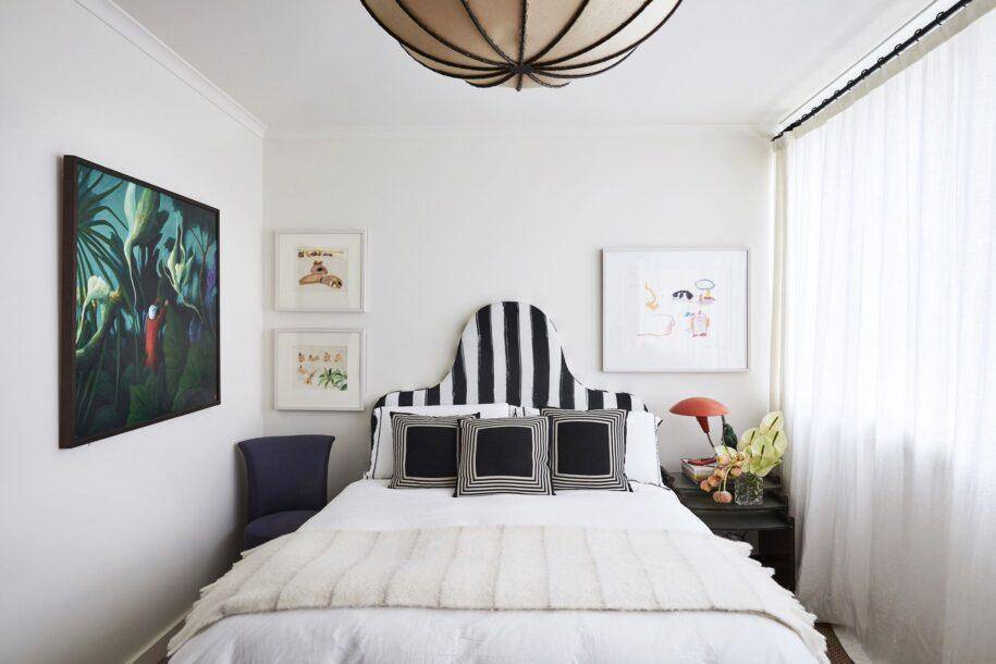 Не стоит привносить в спальню слишком много ярких акцентов – они будут отвлекать ваше внимание и мешать отдыху. Романтику и легкость придадут картины с изображением облаков, неба, влюбленной пары. Черно-белые картины подойдут для стиля арт-деко, а вот поклонникам гламура стоит обратить внимание на яркие цветочные композиции или красочные наклейки