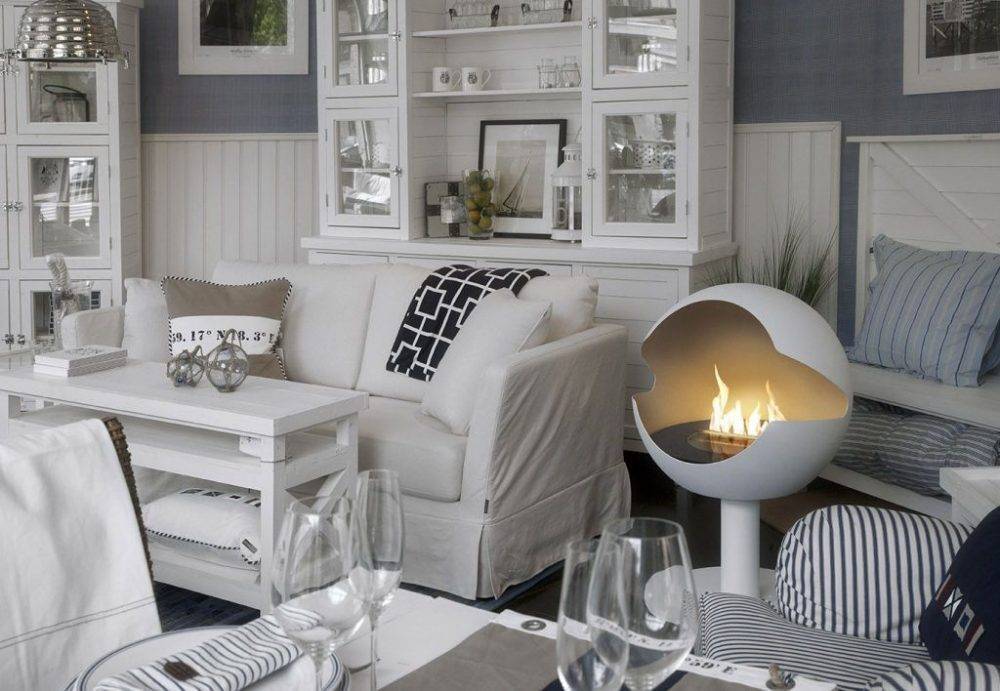 Благодаря белому цвету, такая современная, на первый взгляд, форма камина отлично вписалась в интерьер в стиле прованс. А за счет своей мобильности, камин сможет занять достойное место в любой точке вашей квартиры