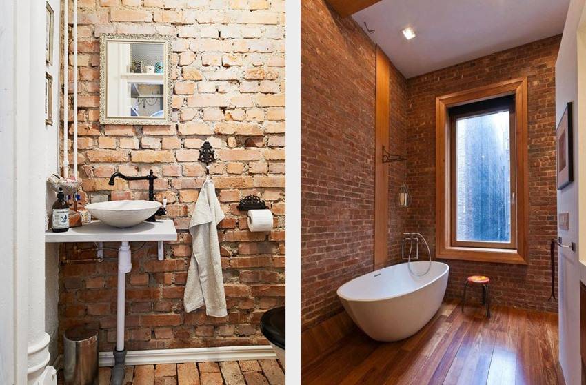 При оформлении ванной комнаты декоративным кирпичом следует отдавать предпочтение влагостойким материалам