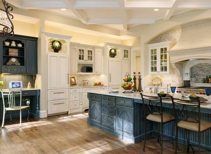 Как нельзя кстати окажутся на кухне декоративные тарелки с орнаментной росписью и блестящая медью посуда. Однако подобные объемные элементы непременно должны быть в гармонии с остальной обстановкой и располагать их нужно таким образом, чтобы они не препятствовали передвижению.