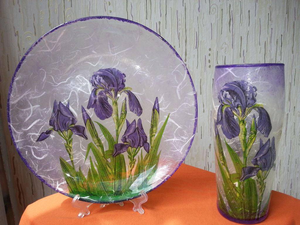 - Обратный декупаж это способ декорирования, при котором изображение с орнаментом приклеивается с изнаночной стороны стеклянного изделия. Таким образом, рисунок будет защищен от внешнего воздействия слоем стекла