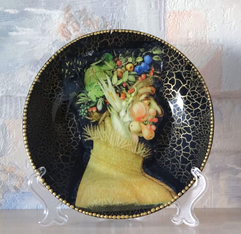 Только после высыхания можно покрыть всю тарелку лаком. В результате получится оригинальная и весьма необычная посуда. Чаще всего ее используют для декора
