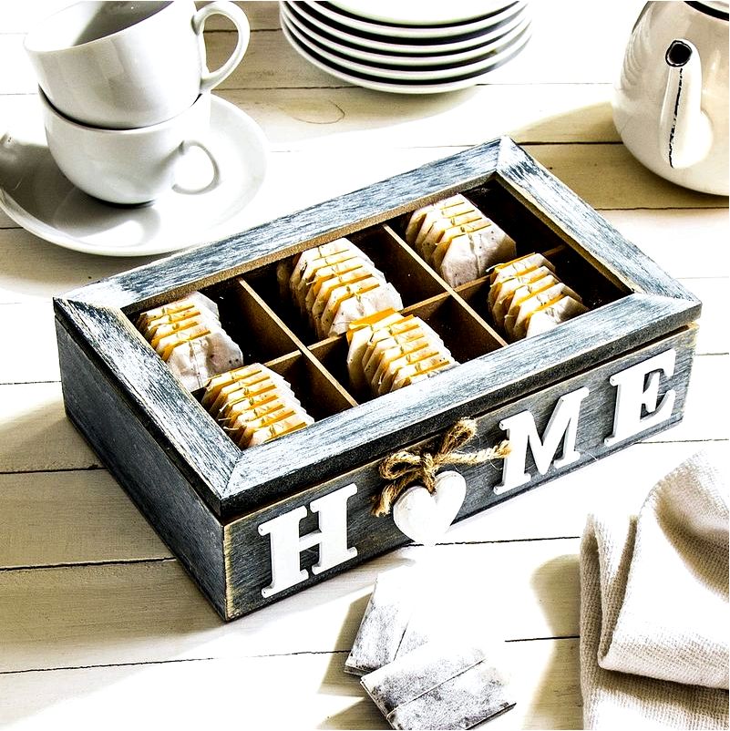 Деревянные емкости непроницаемы для влаги и отлично изолируют запахи, поэтому они прекрасно подойдут для хранения специй и чая. Продукты, хранящиеся в подобных контейнерах, не выветриваются и дольше остаются свежими. Если Вы захотите приобрести деревянные емкости для чая и специй, то можете быть уверенными, что продукты всегда будут наполнены натуральным ароматом, а кухня приобретет более красивый вид благодаря необычно оформленной упаковке. Коробки из дерева для чая особенно декоративны . Доступно светлое, темное или окрашенное дерево. Многие из них имеют отделения для организации разных видов чая в одной коробке. Разные цвета, украшения и узоры делают эти коробки функциональным украшением Вашей кухонной комнаты.