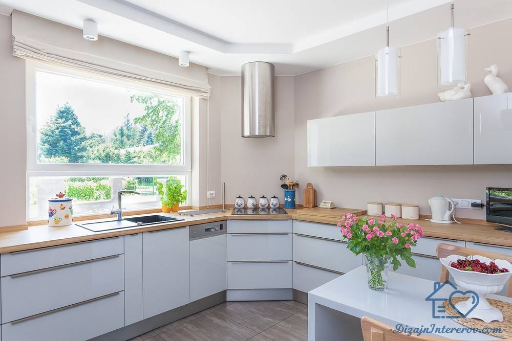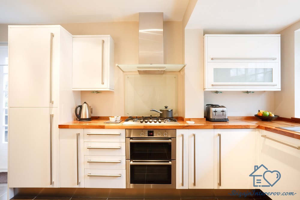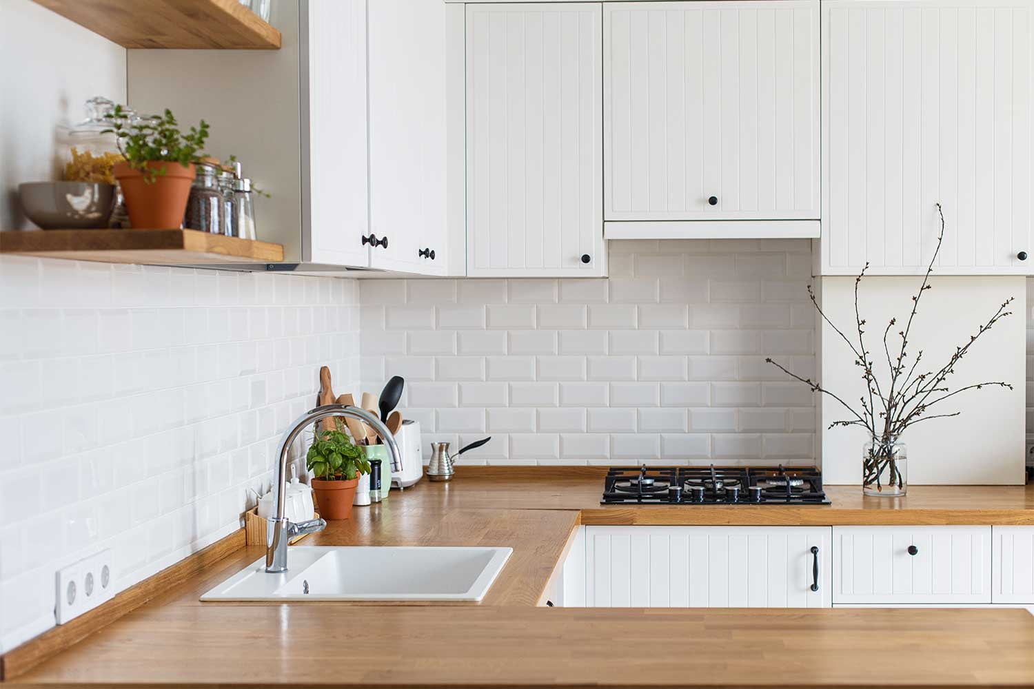 Если в вашей белой кухне столешница из дерева, фактически она становится отправной точкой в оформлении модного интерьера. Нужно грамотно подобрать все отделочные материалы, декор. При этом в первую очередь, учитывается общая стилистика, от неё зависит цвет и фактура дерева.