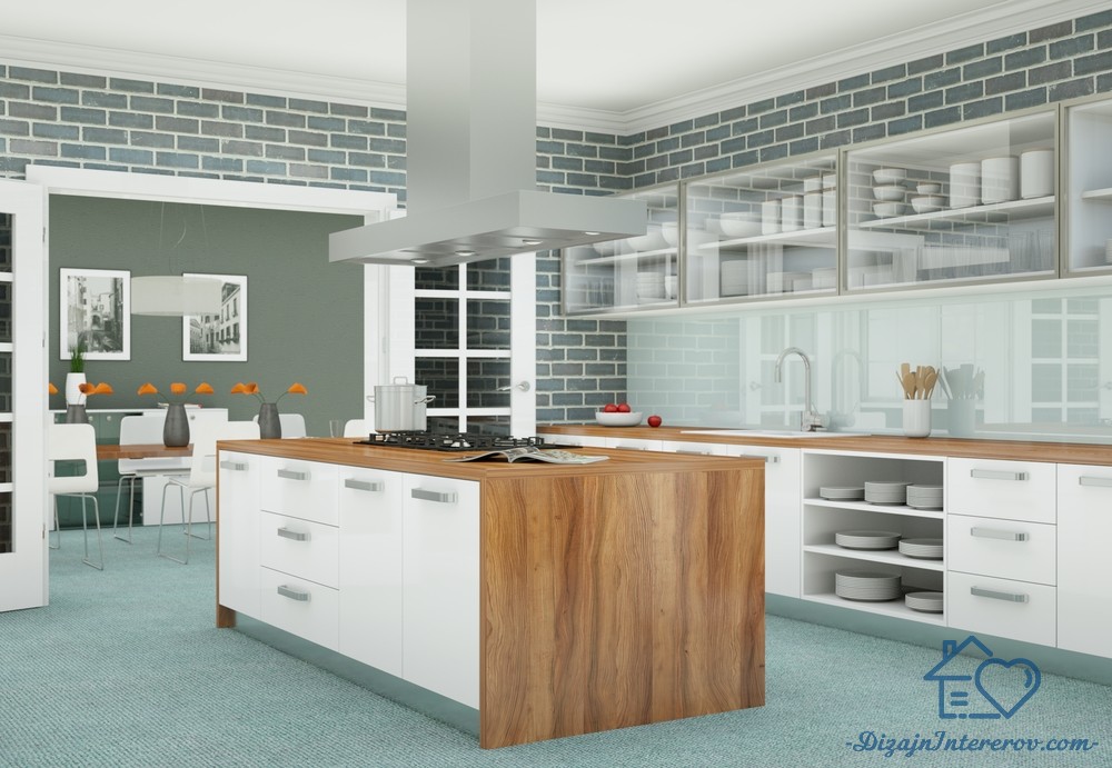 - кирпичная кладка – характерное оформление для выполняется с помощью декоративного кирпича, оттенок которого должен быть максимально приближен к цвету столешницы.