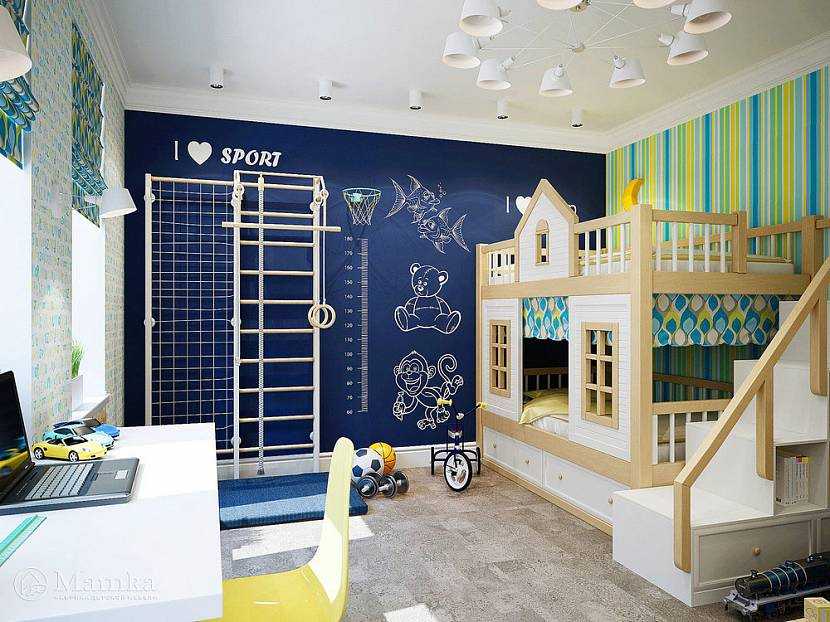 Хорошо, если в детской спальне есть уголок для занятий спортом.