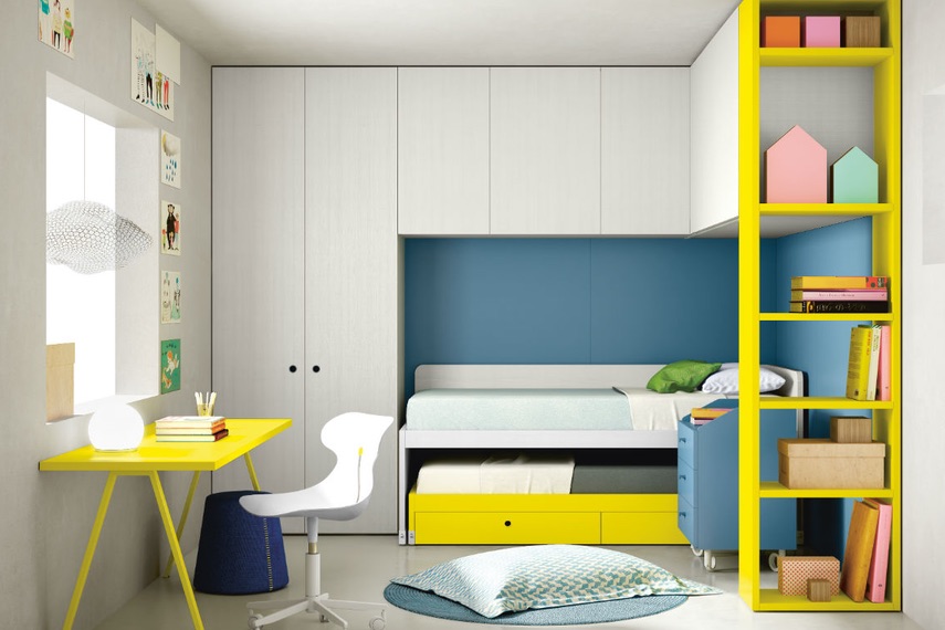 Вопрос со спальным местом в этом случае имеет несколько решений – вы можете просто поставить несколько кроватей, тем самым сильно уменьшив свободное место в комнате, или же установить двухъярусную кровать.