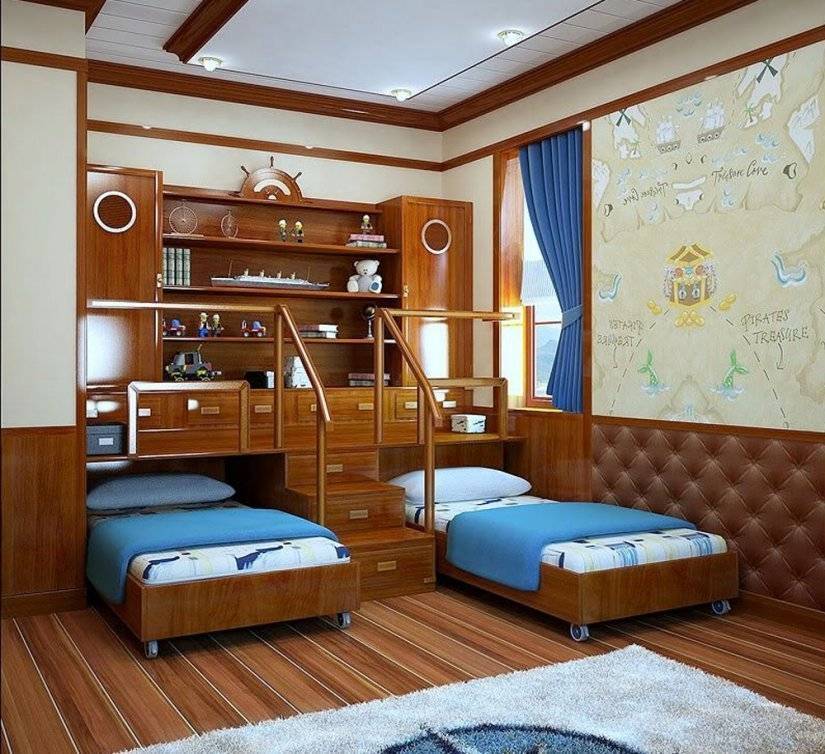 Современная детская для мальчиков с двухъярусной мебельюИсточник vash-vybor.info