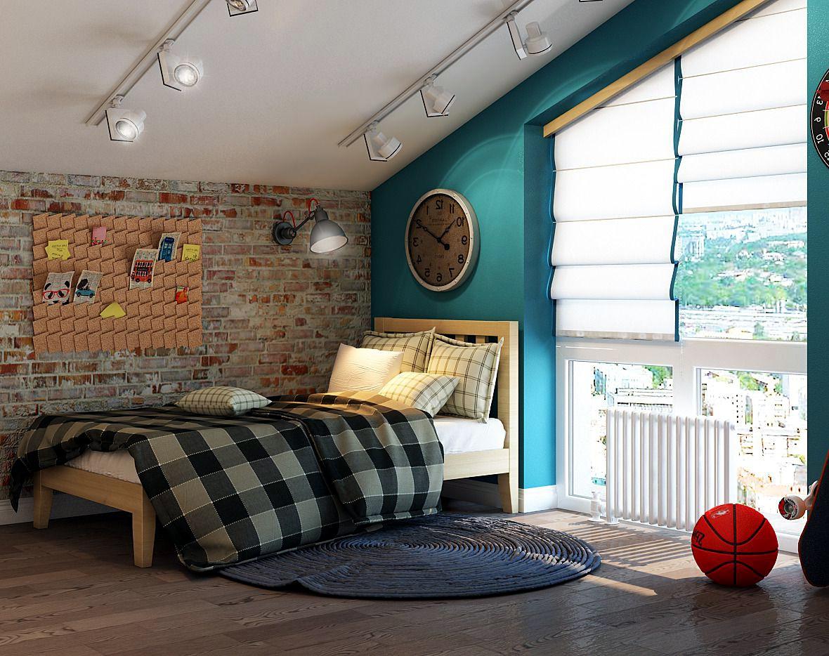 Яркий пример верно спланированного интерьера для детской в стиле лофт. Особенно интересно освещение.
