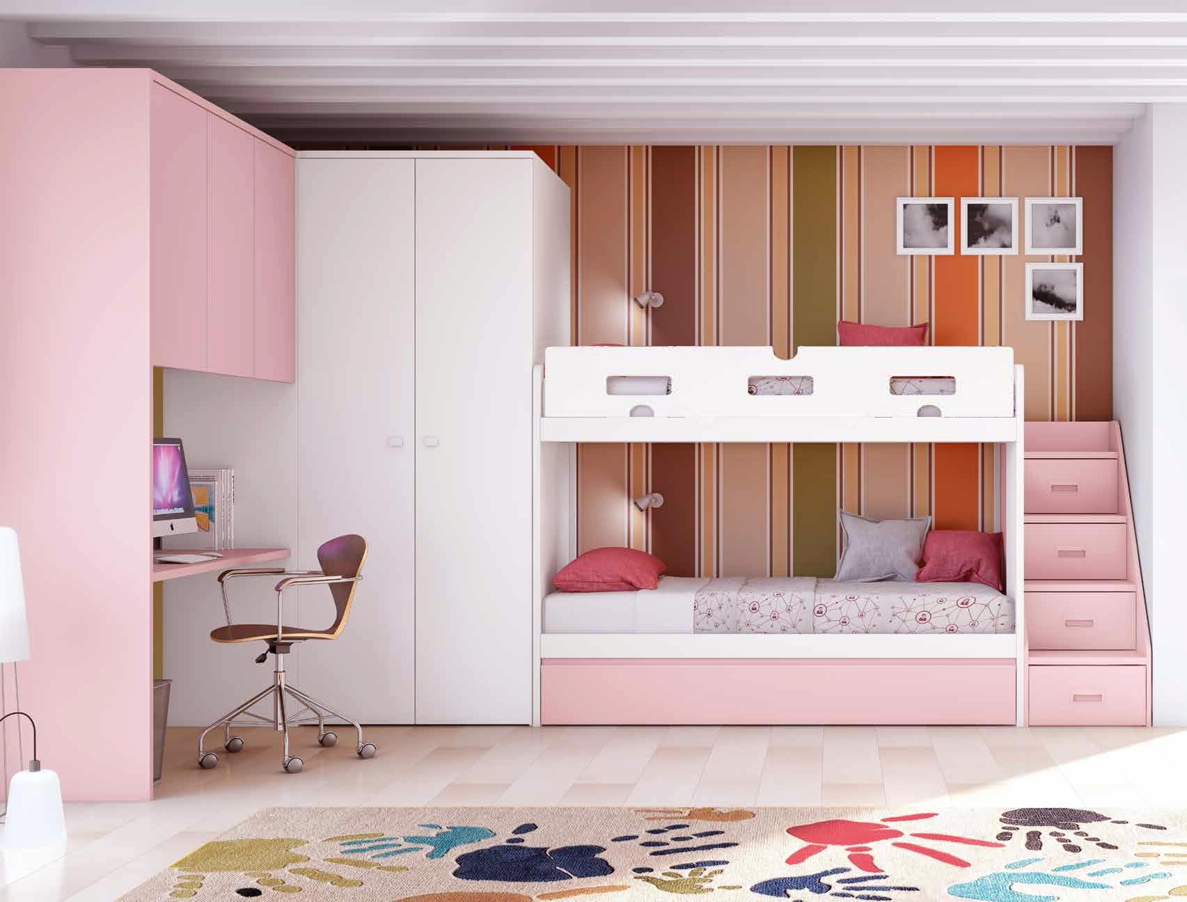 Здесь дизайн совершенно иной, особенно в плане выбора цвета. Он должен быть мягким: предпочтение рекомендуется отдавать пастельным оттенкам. Сама конструкция может быть оформлена в виде небольшого домика, в торцах которого есть «окна». Внутри первого яруса на стене можно повесить рисунки девочек.