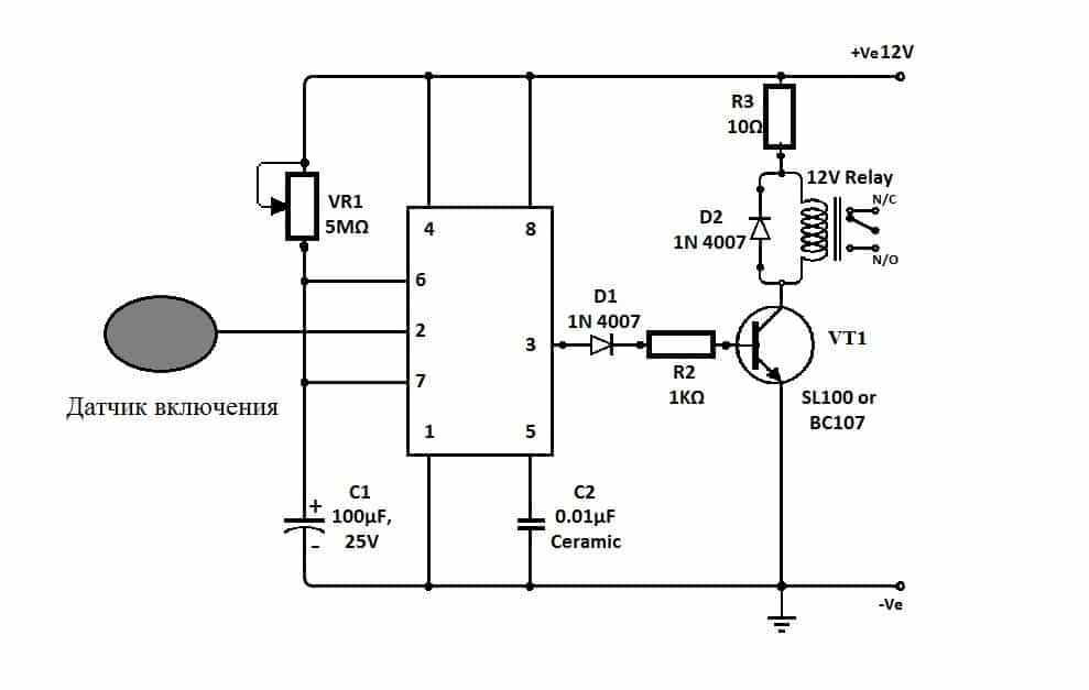 Как видите, управление может осуществляться и за счет датчика, подключенного к выводу 2, и посредством регулируемого резистора VR1.