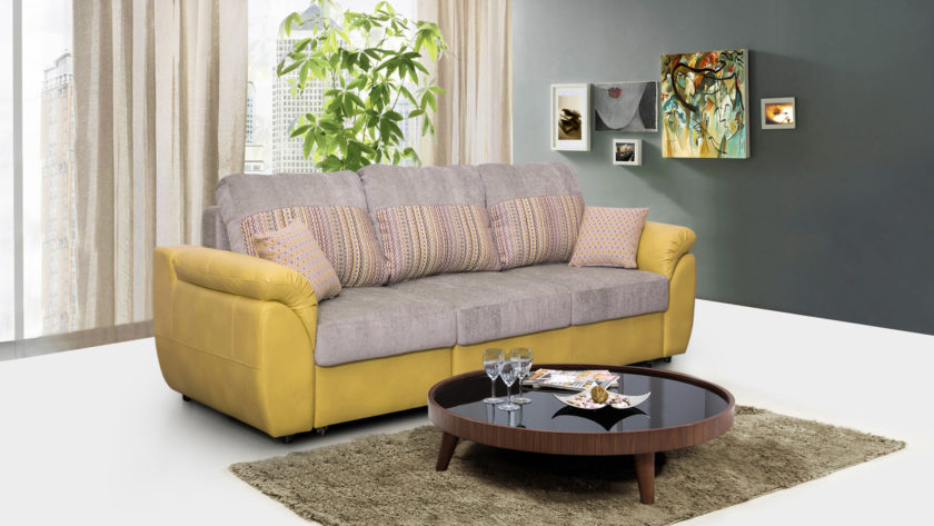 Такие диваны часто встречаются в интерьере современных гостиных комнат. В сложенном виде они занимают небольшое количество места, при этом смотрятся довольно премиально. Механизм раскрытия надежный. А при выдвижении части дивана не царапают напольное покрытие помещения, так как не на роликовых основах, а на навесной конструкции. Изделие отлично подходит как место для сна человека. Ведь выдвигается довольно просто, увеличивая при этом свои размеры.