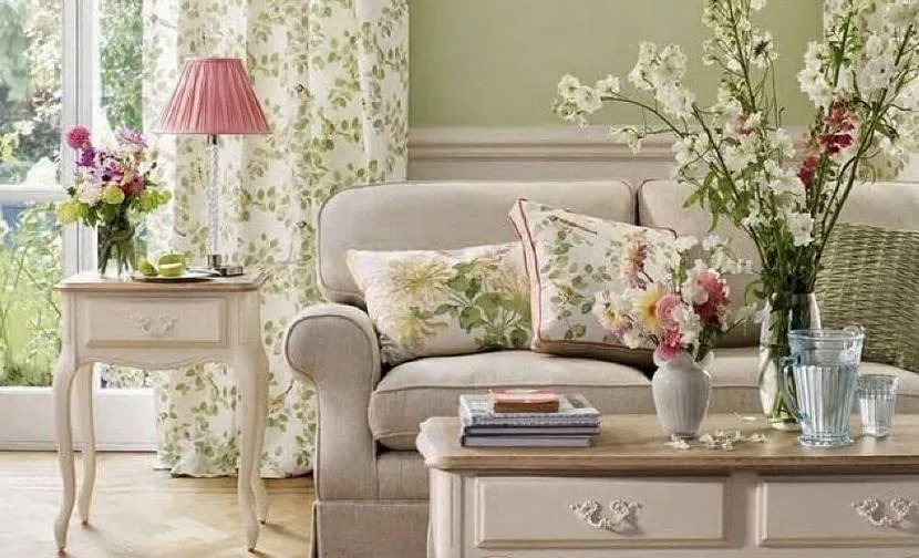 - для оформления диванов используются натуральные ткани пастельных тонов или с цветочным принтом;