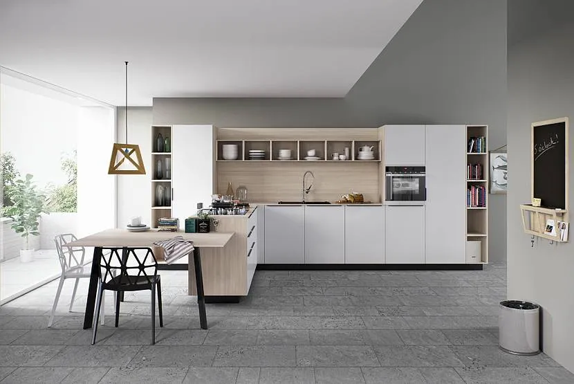 Белая кухня с натуральным деревом: