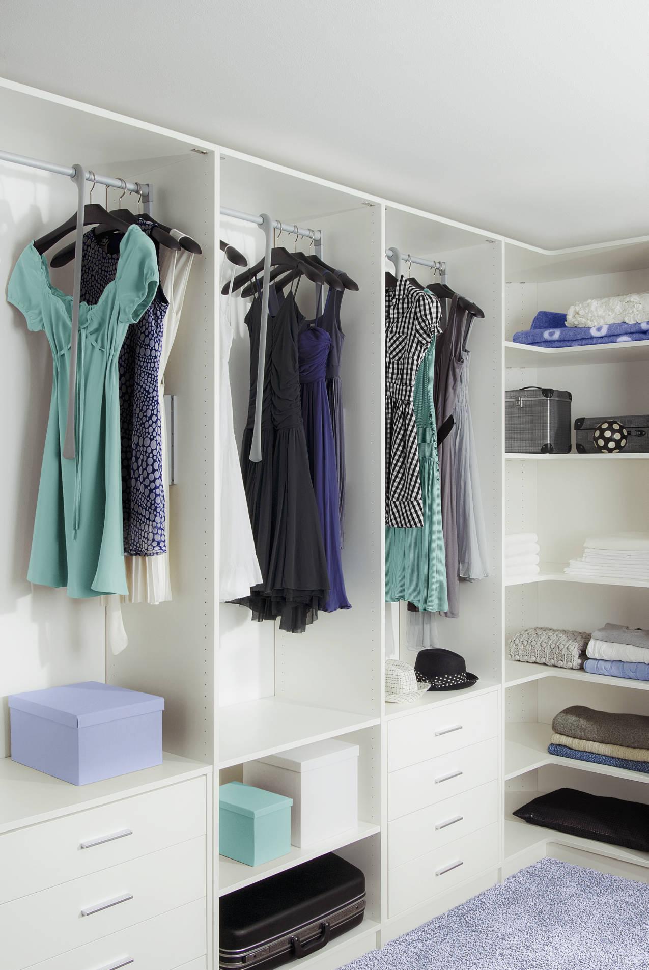 Штанги для вешалок следует обустроить на расстоянии примерно 130–190 см от пола. Длинную одежду («в пол») размещают на специальных штангах.